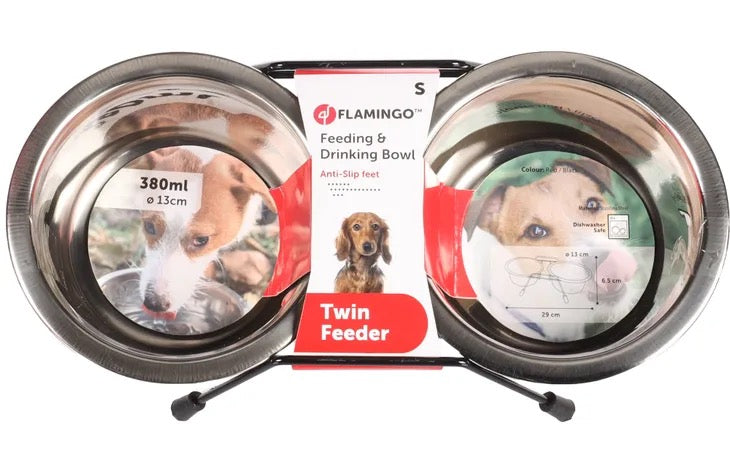 Gamelle Pour La Nourriture Et L'eau Duo Dinner Support Arjun Rouge & Argent & Noir 380 ML