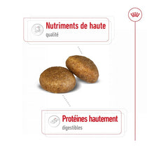 Aliment sec pour chiensAliment complet pour chiens - Pour chiens adultes de grandes races (de 26 44 kg) - partir de 15 moisBNFICESSANT DIGESTIVEAide favoriser la sant digestive grce des protines hautement digestibles et un apport quilibr en fibres.SOUTIEN DES OS ET DES ARTICULATIONSAide maintenir la sant des os et des articulations des chiens de grandes races grce une combinaison de minraux et de nutriments.SOUTIEN OPTIMAL DE LA SANTContient des vitamines et des nutriments de haute qualit pour une absorption maximale.TAILLE DE CROQUETTE ADAPTEConue pour encourager la mastication.INFORMATIONS NUTRITIONNELLESCOMPOSITIONCOMPOSITION protines de volaille dshydrates, farine de bl, mas, graisses animales, bl, protines animales hydrolyses, farine de mas, gluten de mas, protines de porc dshydrates, orge, substances minrales, pulpe de betterave, huile de soja, produits de levures, huile de poissons, huile dalgues Schizochytrium sp., glucosamine issue de la fermentation, cartilage hydrolys (source de chondrotine).ADDITIFSADDITIFS (au kg) Additifs nutritionnels Vitamine A 15800 UI, Vitamine D3 1000 UI, Fer (3b103) 33 mg, Iode (3b201, 3b202) 3,3 mg, Cuivre (3b405, 3b406) 10 mg, Manganse (3b502, 3b504) 43 mg, Zinc (3b603, 3b605, 3b606) 127 mg, Slnium (3b801, 3b811, 3b812) 0,06 mg - Additifs technologiques Clinoptilolite dorigine sdimentaire 10 g - Conservateurs - Antioxygnes.CONSTITUANTS ANALYTIQUESCONSTITUANTS ANALYTIQUES Protine 26,0 % - Cellulose brute 1,3 % - Teneur en matires grasses 17,0 % - Cendres brutes 7,7 %.RATION JOURNALIREPoids du chien(kg)Vie lintrieur - pas dexerciceActivit normaleChiens trs actifs26278 g (2 doses + 78 dose)322 g (3 doses + 38 dose)366 g (4 doses + 58 dose)30310 g (3 doses+ 28 doses)359 g (3 doses + 68 dose)408 g (5 doses + 18 dose)35348 g (3 doses+ 58 dose)403 g (4 doses + 28 dose)458 g (5 doses + 68 dose)40384 g (4 doses)445 g (4 doses+ 58 dose)506 g (6 doses + 38 dose)44413 g (4 doses + 28 dose)478 g (5 doses)543 g (6 doses + 68 dose)Poids du chien(kg)CANVie lintrieur - pas dexerciceActivit normaleChiens trs actifs261176g (1 dose + 78 dose)220g (2 doses + 28 dose)264g (2 doses + 68 dose)301208g (2 doses+ 18 dose)257g (2 doses + 58 dose)306g (3 doses + 18 dose)351246g (2 doses + 48 dose)301g (3 doses + 18 dose)356g (3 doses + 68 dose)401283g (3doses)343g (3 doses + 58 dose)404g (4 doses + 28 dose)441311g (3 doses + 28 dose)376g (3 doses + 78 dose)441g (4 doses + 58 dose)DTAILS DU PRODUITROYAL CANIN Maxi Adult est une formule nutritionnelle complte et quilibre spcialement conue pour rpondre aux besoins spcifiques de votre chien de grande taille et le soutenir tout au long de sa vie adulte. Cet aliment convient aux chiens de grande taille pesant entre 26 et 44 kg et gs de plus de 15 mois. Les chiens de grande taille ont un tube digestif proportionnellement sous-dimensionn par rapport aux chiens de petite taille et sont plus souvent sujets aux sensibilits digestives. Grce des protines hautement digestibles et un apport quilibr en fibres, ces croquettes les aident maintenir leur sant digestive. Le poids souvent important des chiens de grande taille sollicite leurs articulations. Cest pourquoi, cette formule est spcialement conue partir dune combinaison de minraux et de nutriments pour soutenir la sant de leurs os et de leurs articulations. Les croquettes ROYAL CANIN Maxi Adult sont conues partir dune combinaison de vitamines et de nutriments de haute qualit pour une assimilation maximale et pour soutenir un bon tat de sant gnral. La forme et la taille de ces croquettes ont t spcialement adaptes la mchoire unique de votre chien et lencouragent bien croquer. ROYAL CANIN Maxi Adult est galement disponible en deux textures humides mousse et bouches en sauce. Lassociation daliments secs et humides apporte de la varit lalimentation de votre chien, rendant ses repas plus stimulants et attrayants.Aliment sec pour chiens Aliment complet pour chiens - Pour chiens adultes de grandes races (de 26 44 kg) - partir de 15 mois BNFICES SANT DIGESTIVE Aide favoriser la sant digestive grce des protines hautement digestibles et un apport quilibr en fibres. SOUTIEN DES OS ET DES ARTICULATIONS Aide mainteniAliment sec pour chiens Aliment complet pour chiens - Pour chiens adultes de grandes races (de 26 44 kg) - partir de 15 mois BNFICES SANT DIGESTIVE Aide favoriser la sant digestive grce des protines hautement digestibles et un apport quilibr en fibres. SOUTIEN DES OS ET DES ARTICULATIONS Aide mainteni